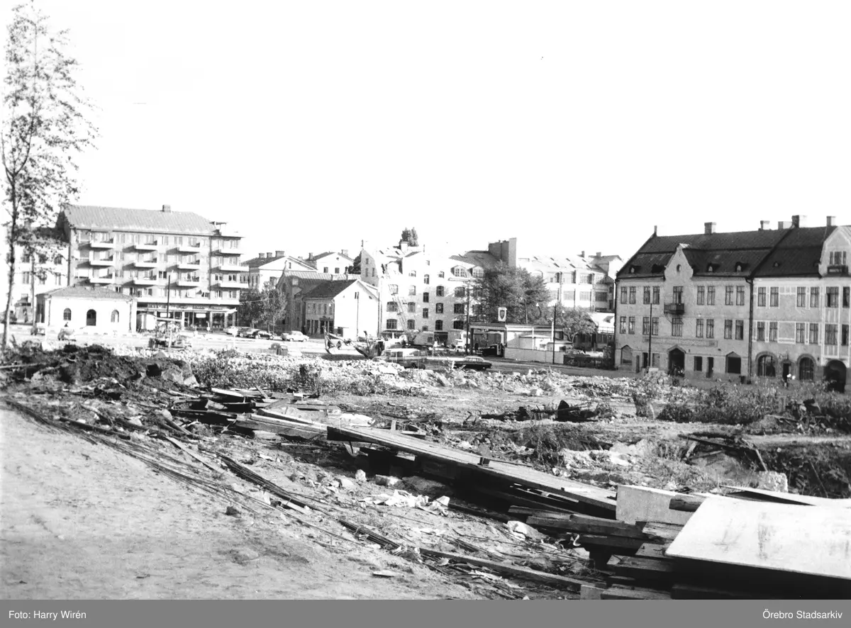 Träkåkarna längs Drottninggatan rivna för byggnation av Krämaren på Drottninggatan 27, 29, september1959