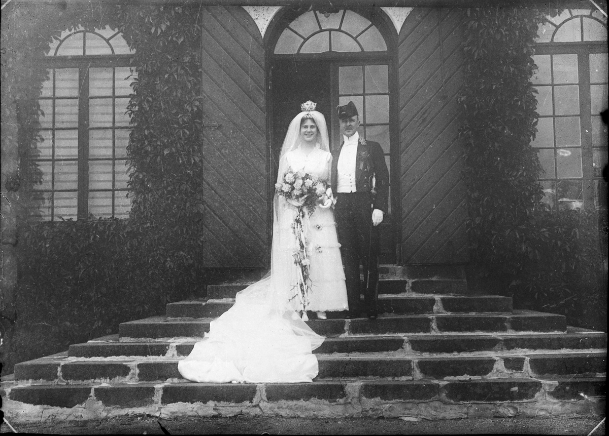 Brudparet Fogelmarck på trappan till Forsmarks herrgård, Uppland