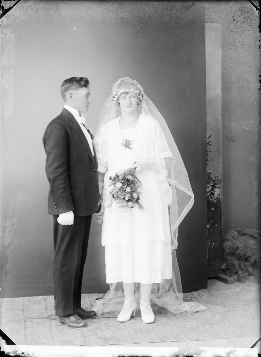 Brudparet Wallin från Lysta, Hökhuvuds socken, Uppland 1922