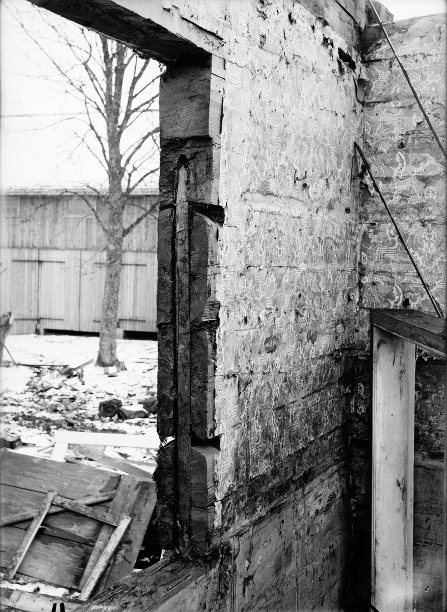 Titel: Helgdagsstuga - nu på friluftsmuseet Disagården - under nedmontering i Gränby, Björklinge socken, Uppland