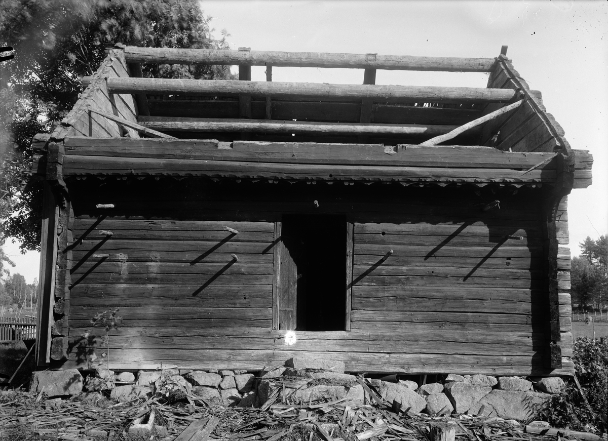 Mat- och spannmålsbod - nu på friluftsmuseet Disagården - under nedmontering, Östanå, Morkarla socken, Uppland