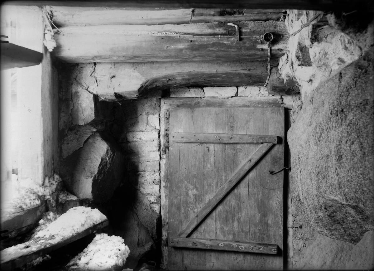 Källardörr - nu på friluftsmuseet Disagården - under nedmontering i Gränby, Björklinge socken, Uppland