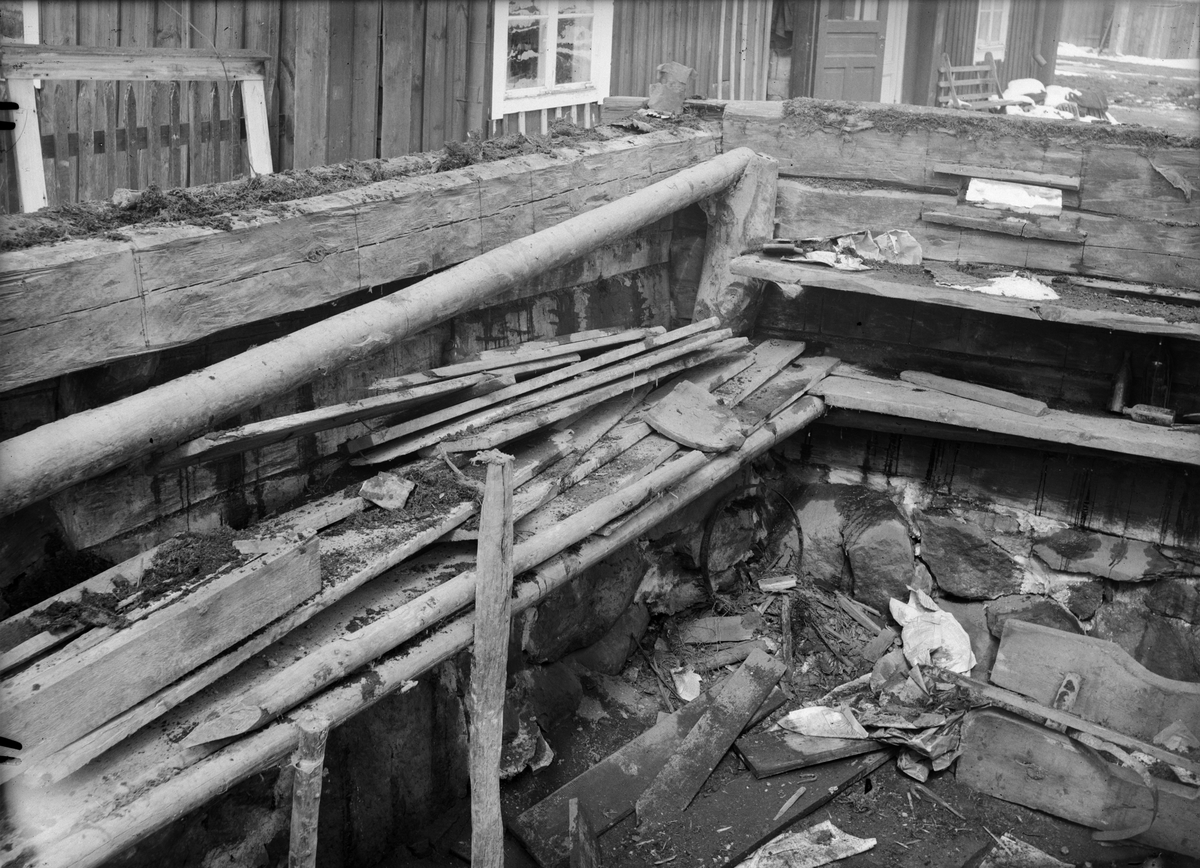 Helgdagsstuga - nu på friluftsmuseet Disagården - under nedmontering i Gränby, Björklinge socken, Uppland