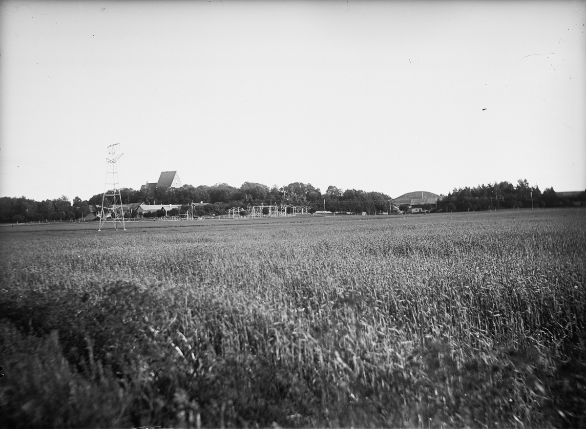 Modeller av friluftsmuseet Disagårdens byggnader utplacerade på plats i Gamla Uppsala år 1928