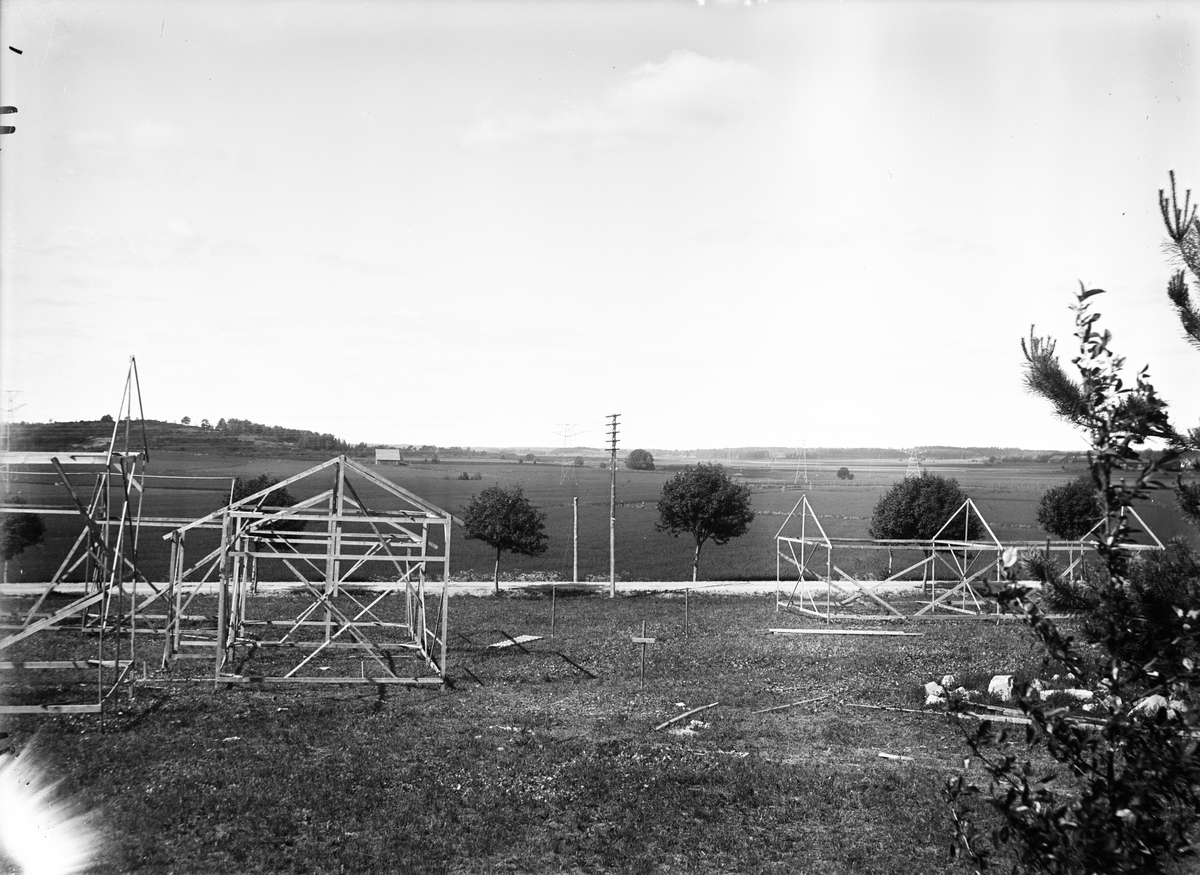 Modeller av friluftsmuseet Disagårdens byggnader utplacerade på plats i Gamla Uppsala år 1928
