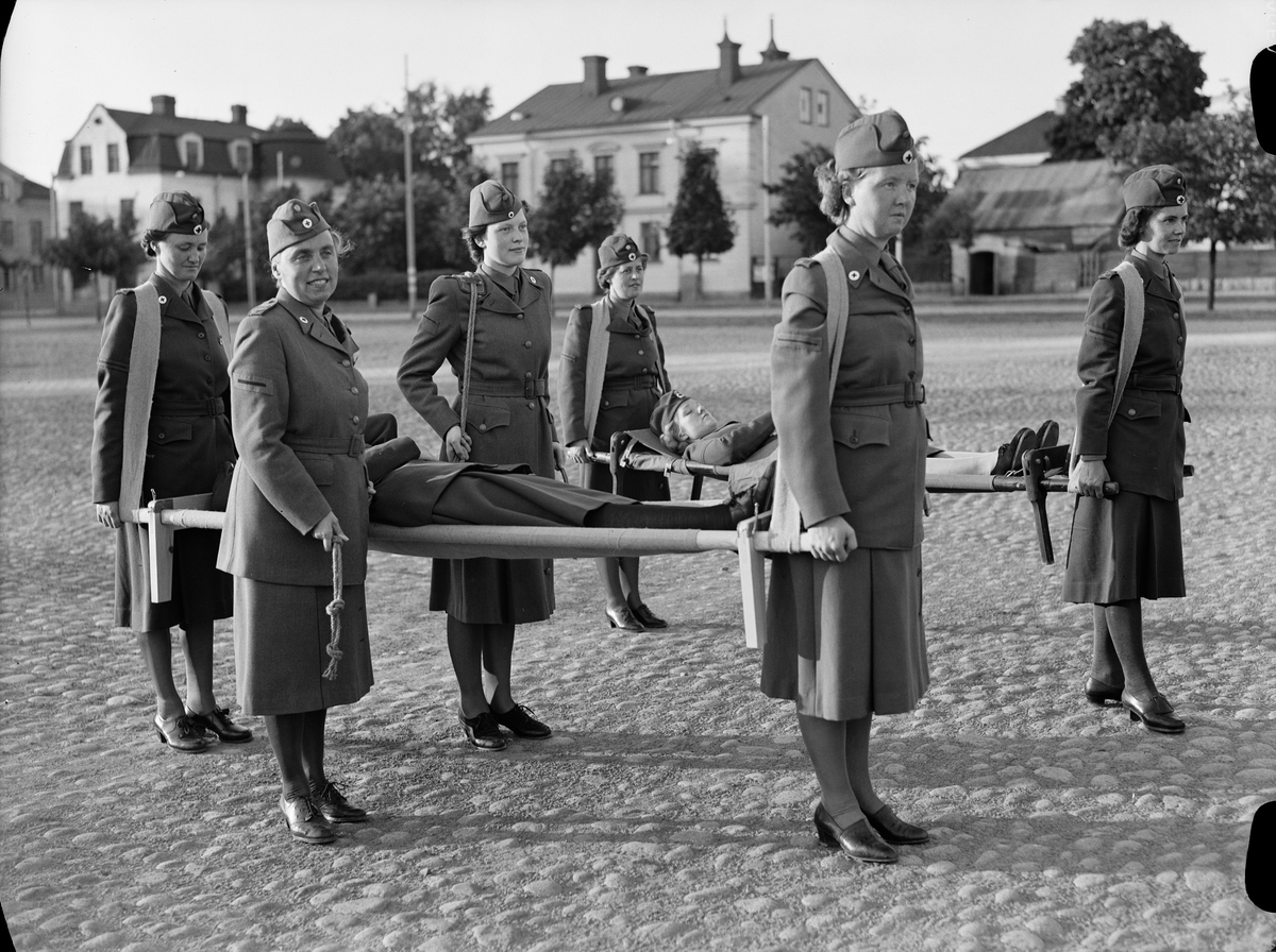 Sannolikt civilförsvarsövning på Vaksala torg, Fålhagen, Uppsala juli 1944