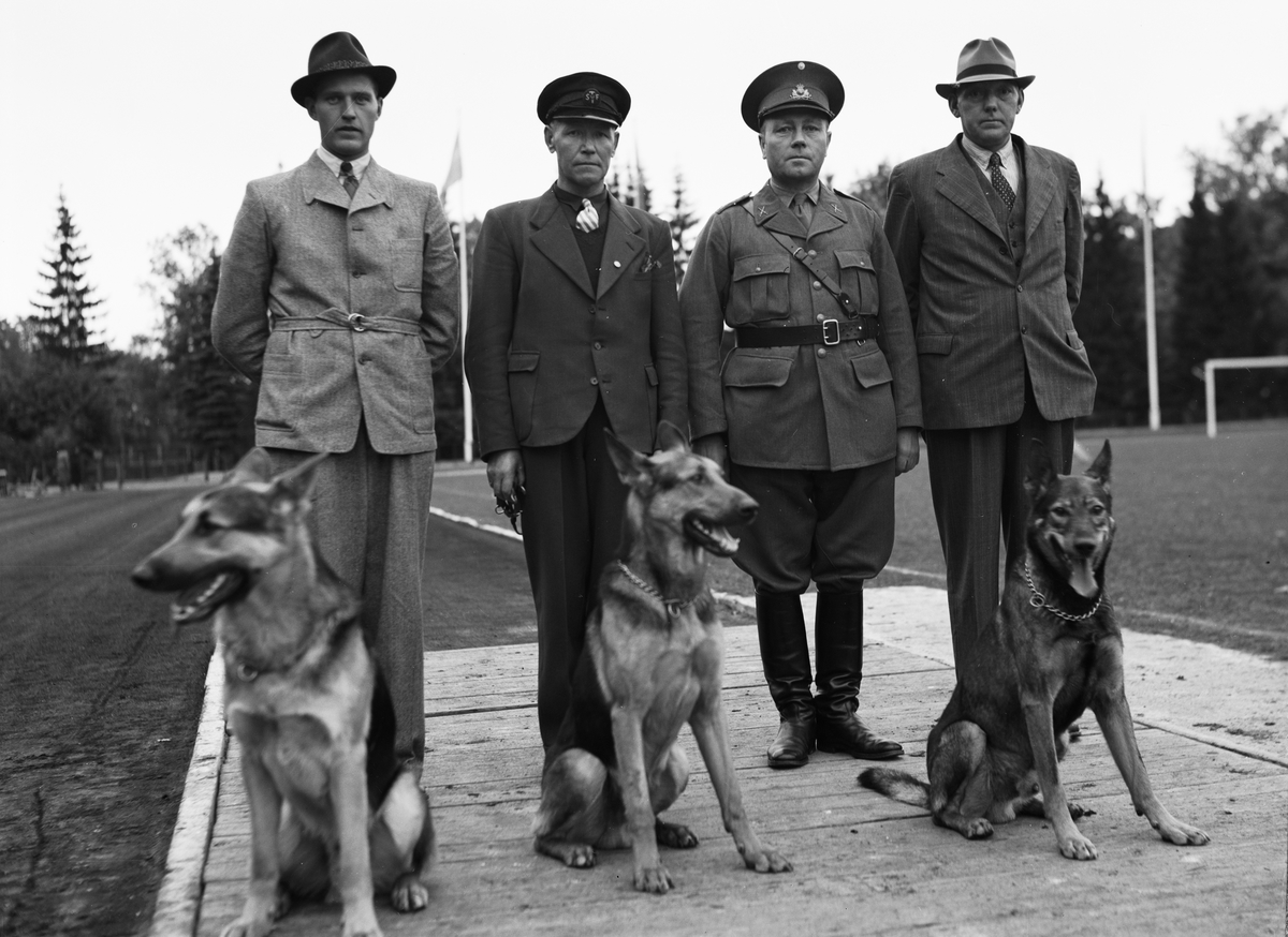 Hundförare på Studenternas Idrottsplats, Uppsala 1943