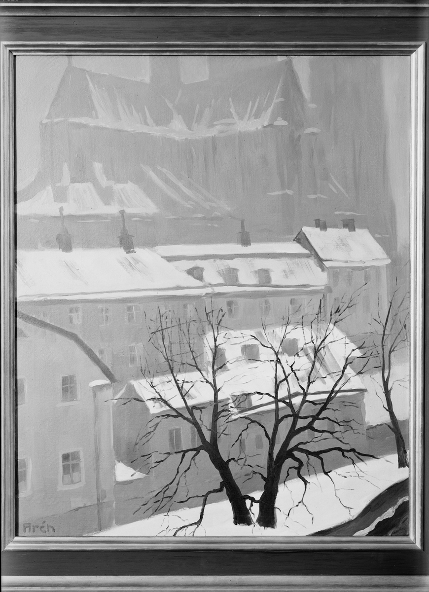 Oljemålning av konstnären Olof Arén, Uppsala 1944