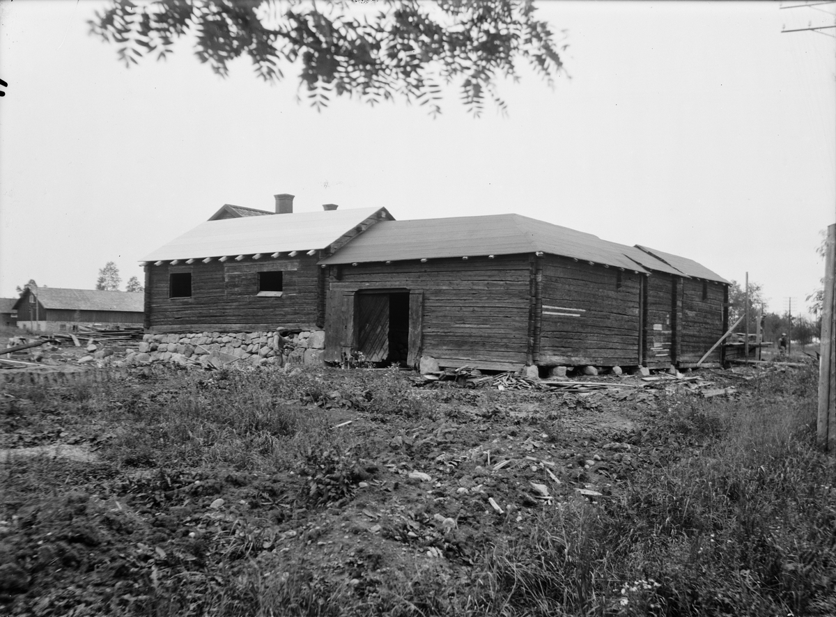 Gränbygården på friluftsmuseet Disagården, Gamla Uppsala, Uppland under uppförande