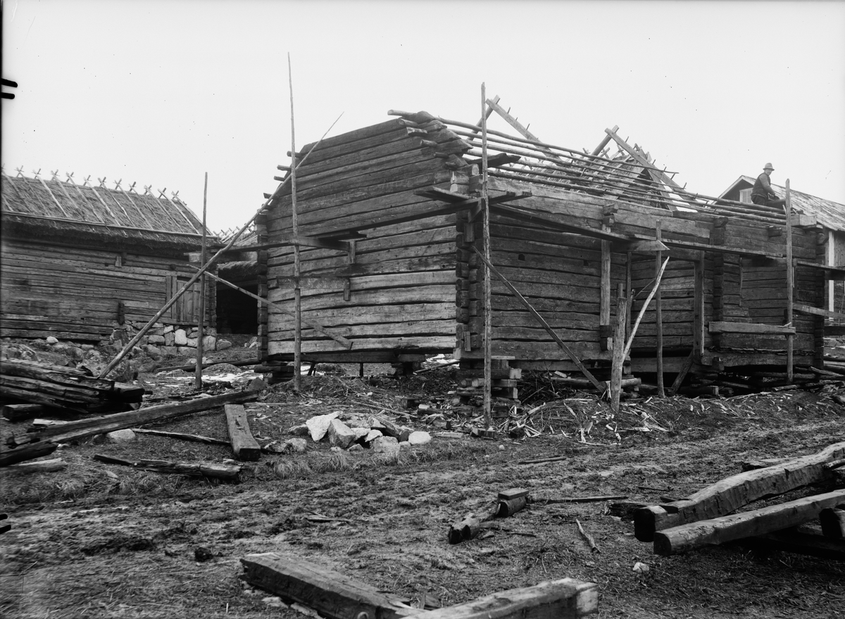 Titel: Kvekgården under restaurering, Fröslunda socken, Uppland 1934
