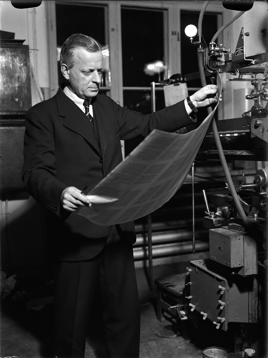 Sannolikt faktor på Almqvist & Wiksell Tryckeri AB, Västra Ågatan 16, Uppsala, interiör 1937