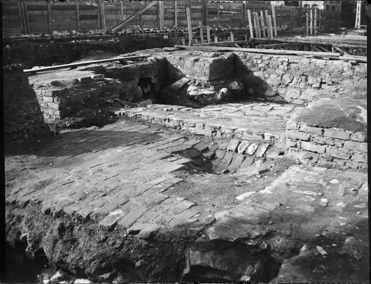 Arkeologisk utgrävning, notarierummets tegelgolv, Studentholmen, Uppsala 1907