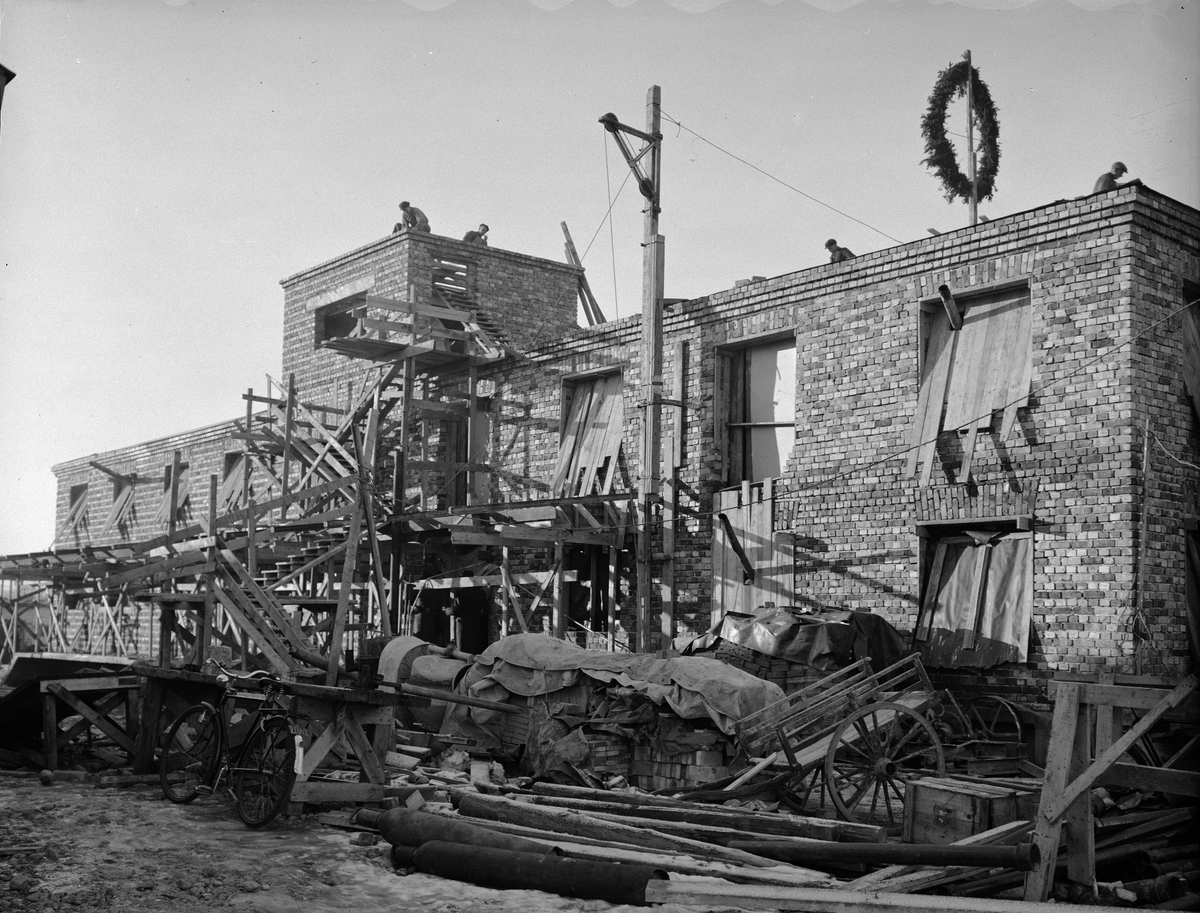 "Trädgårdscentralens nybygge under tak", Uppsala 1944