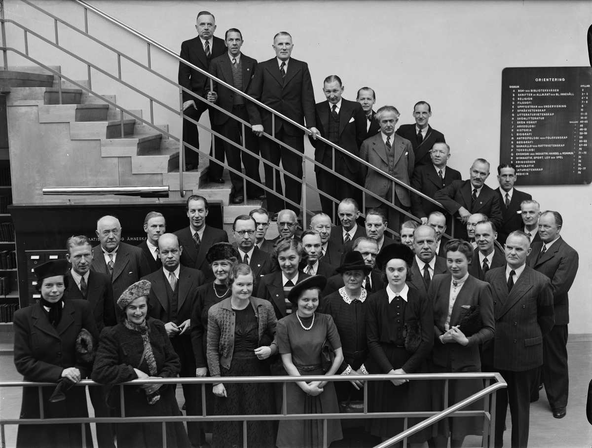 Grupporträtt - kommunaltjänstemän på besök i Uppsala stadsbibliotek, november 1941