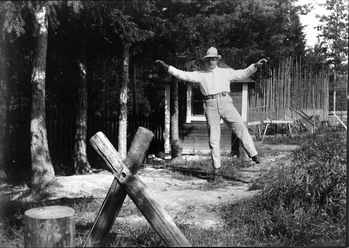 Ruben Liljefors går på lina, sannolikt Dalarna, Sverige