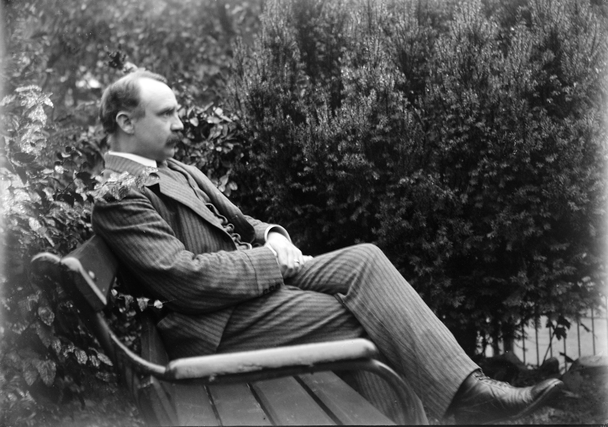 Ruben Liljefors på parkbänk, sannolikt Sverige
