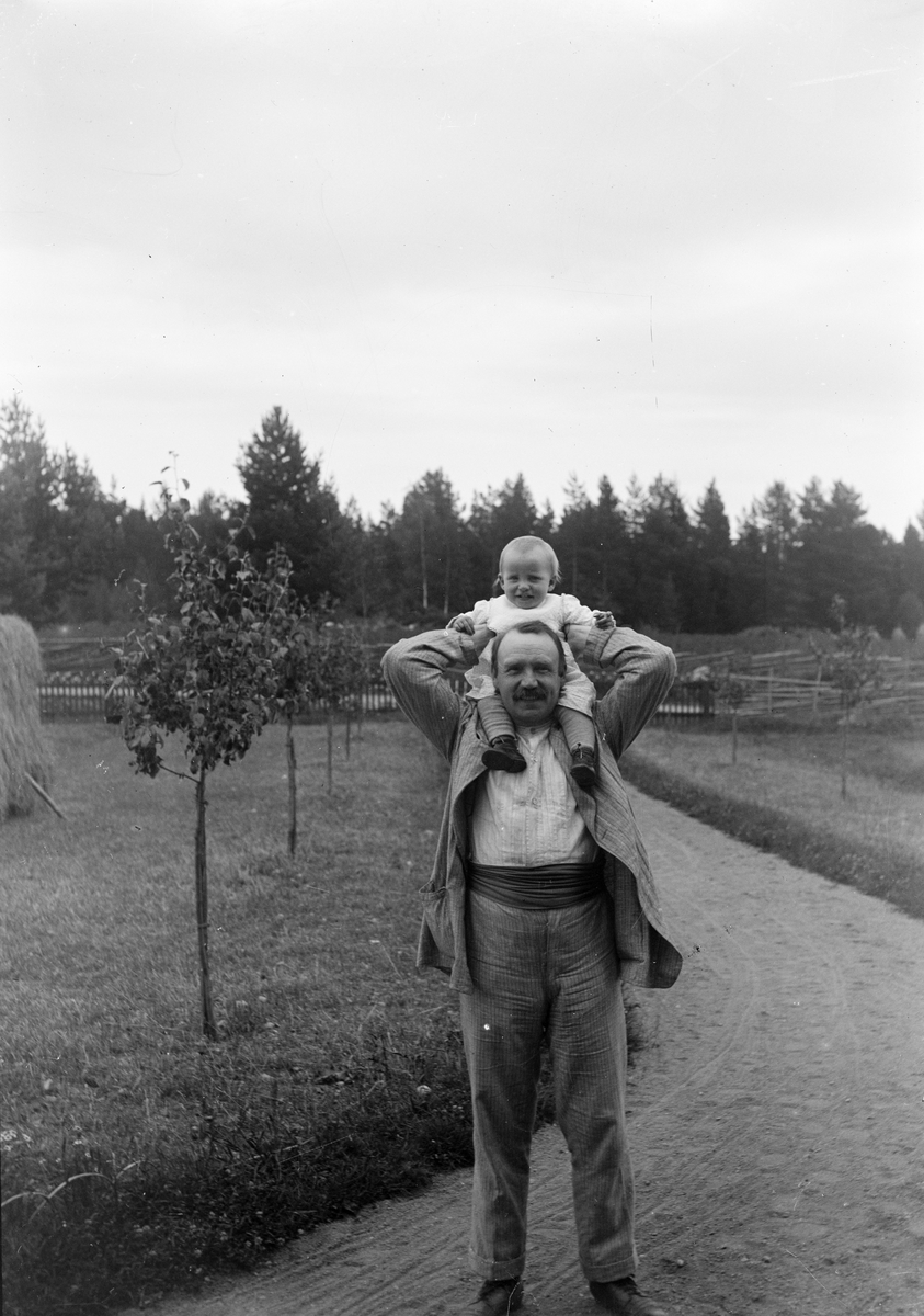 Ruben Liljefors med sin dotter Marit ute i trädgård, sannolikt Svensgården, Dalarna