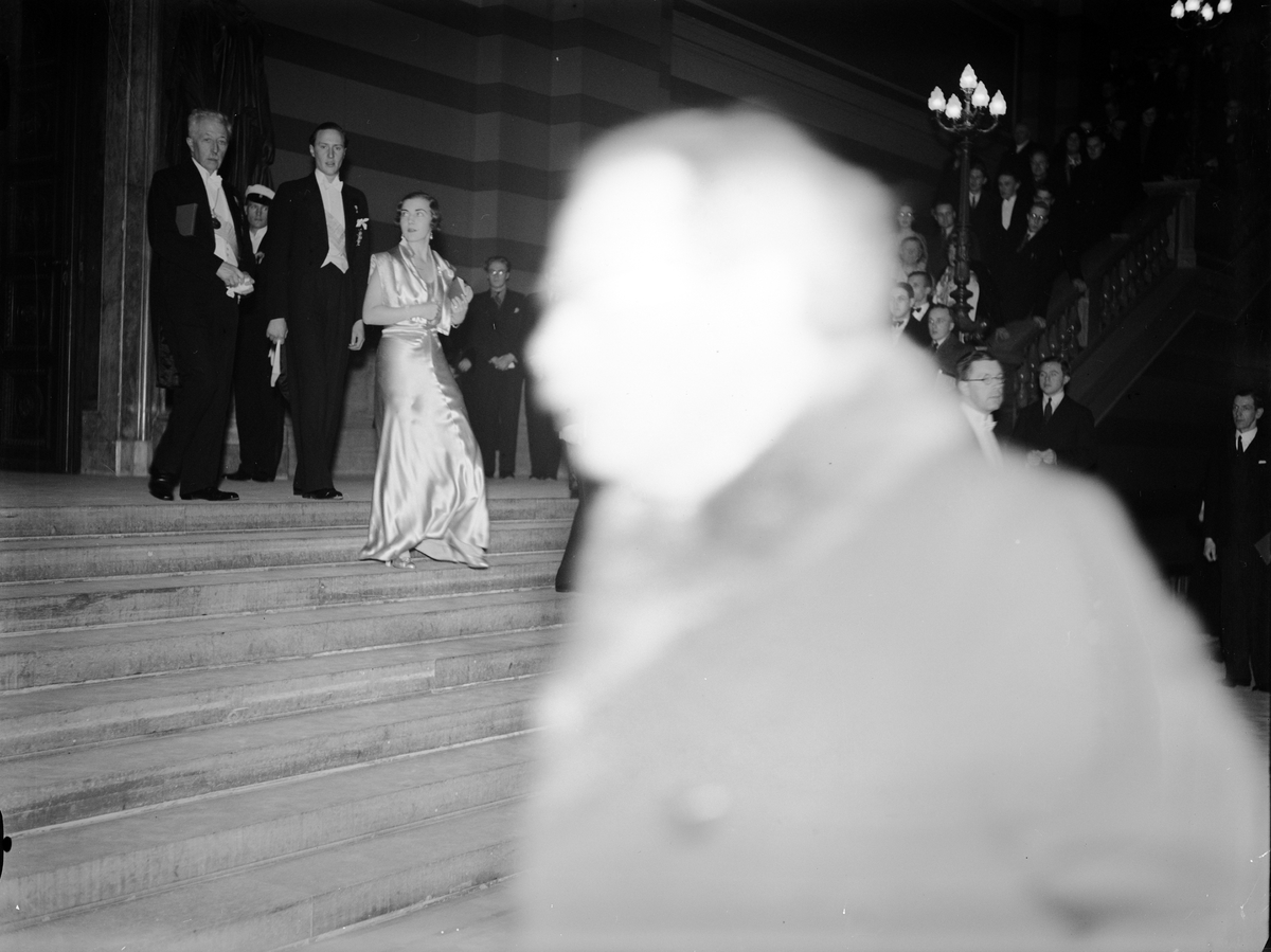 Svenska Turistföreningens 50-årsjubileum - deltagare i "aulafesten" på väg ut från Universitetsaulan, Uppsala 1935