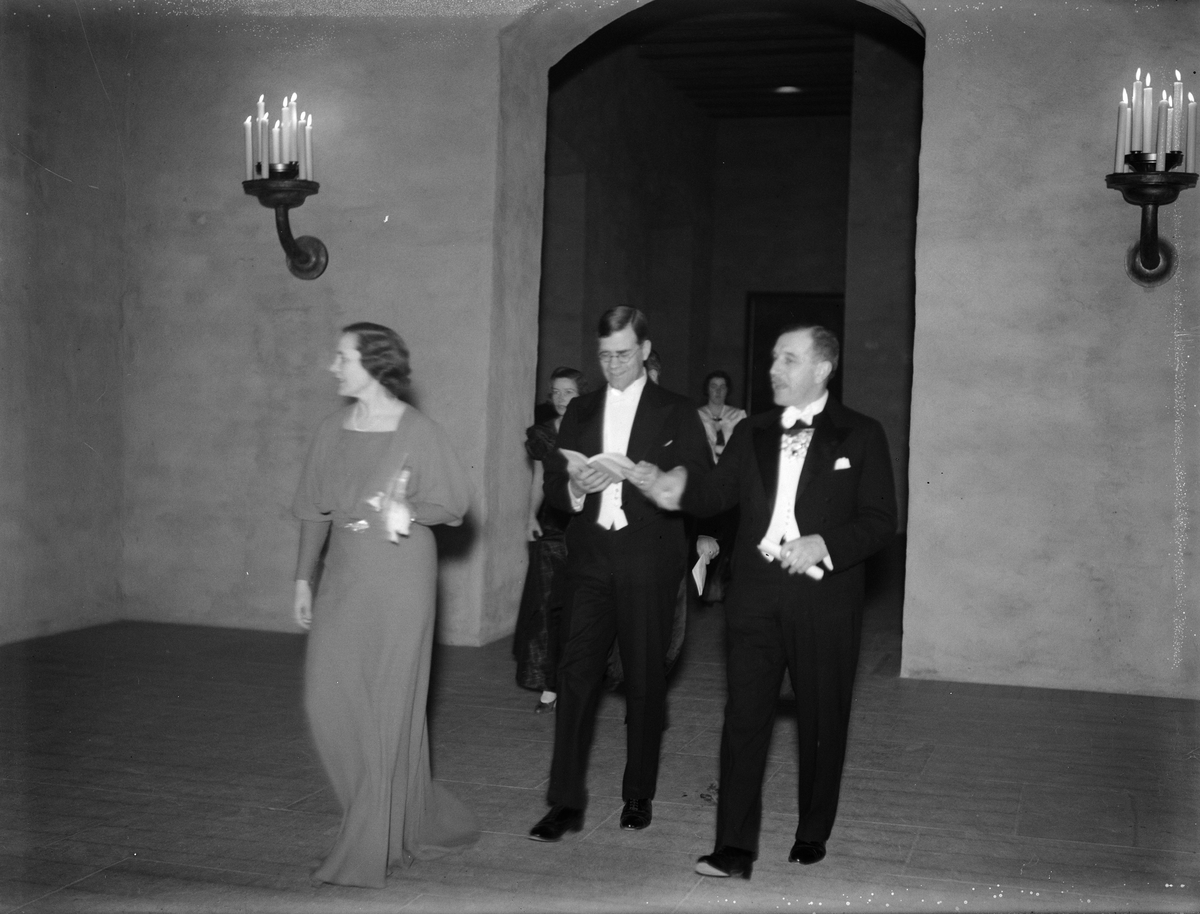 Svenska Turistföreningens 50-årsjubileum - gäster på väg in i Rikssalen, Uppsala slott, Uppsala 1935