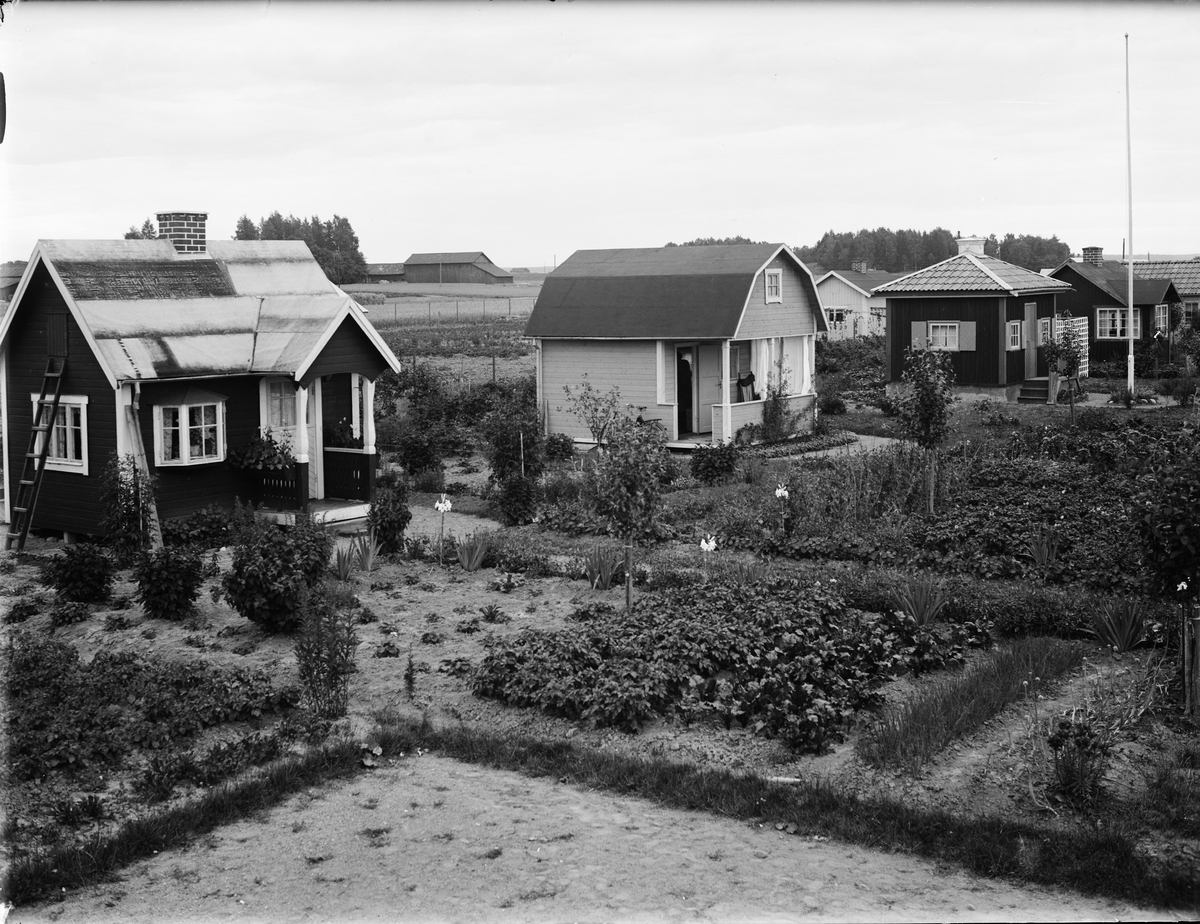 Titel: "Blommande idyll på Vaksalaslätten. Koloniföreningen Flora skördar lön för idog möda", Uppsala 1935