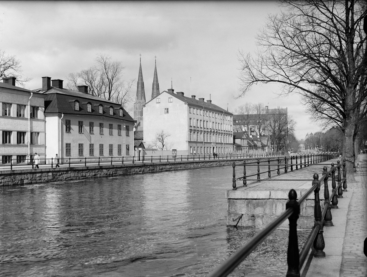 Fyrisån och bebyggelse längs Västra Ågatan, Uppsala 1948