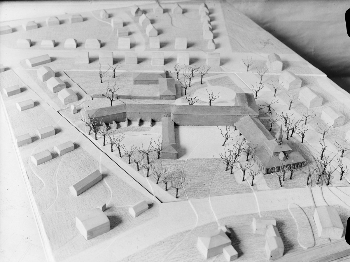 Modell över Bergaskolan med omgivning, Kåbo, Uppsala 1948