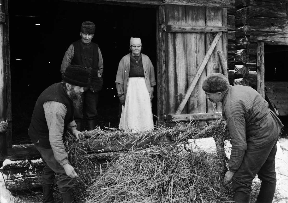 Bindning av strunthalmskärve, Villsberga, Biskopskulla socken, Uppland
