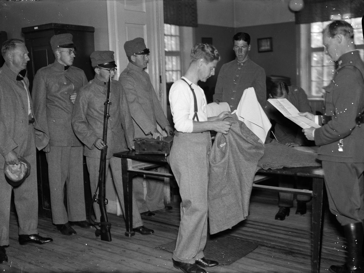 "Trettiofemåringar i vapenrock på Polacksbacken", Uppsala 1938