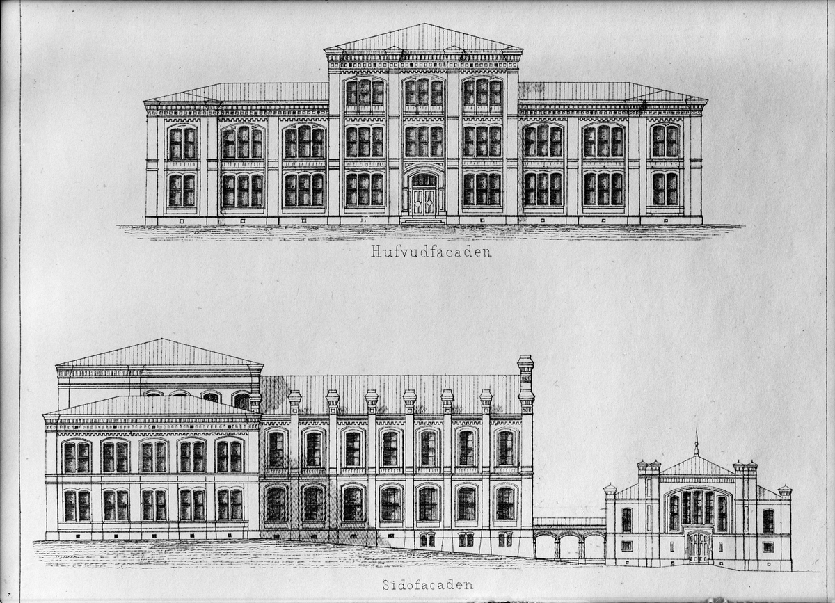 Byggnadsritning, Högre Allmänna Läroverket, Skolgatan, Uppsala