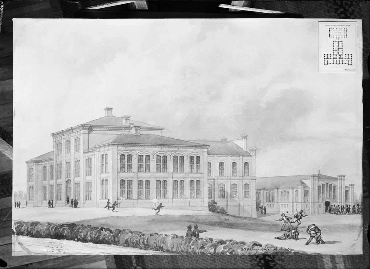 Akvarell och ritning, Högre elementarläroverket, Skolgatan, Uppsala