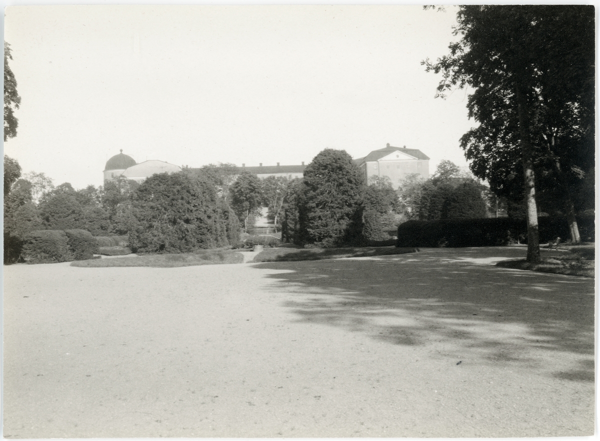 Vy över Botaniska trädgården mot Uppsala slott