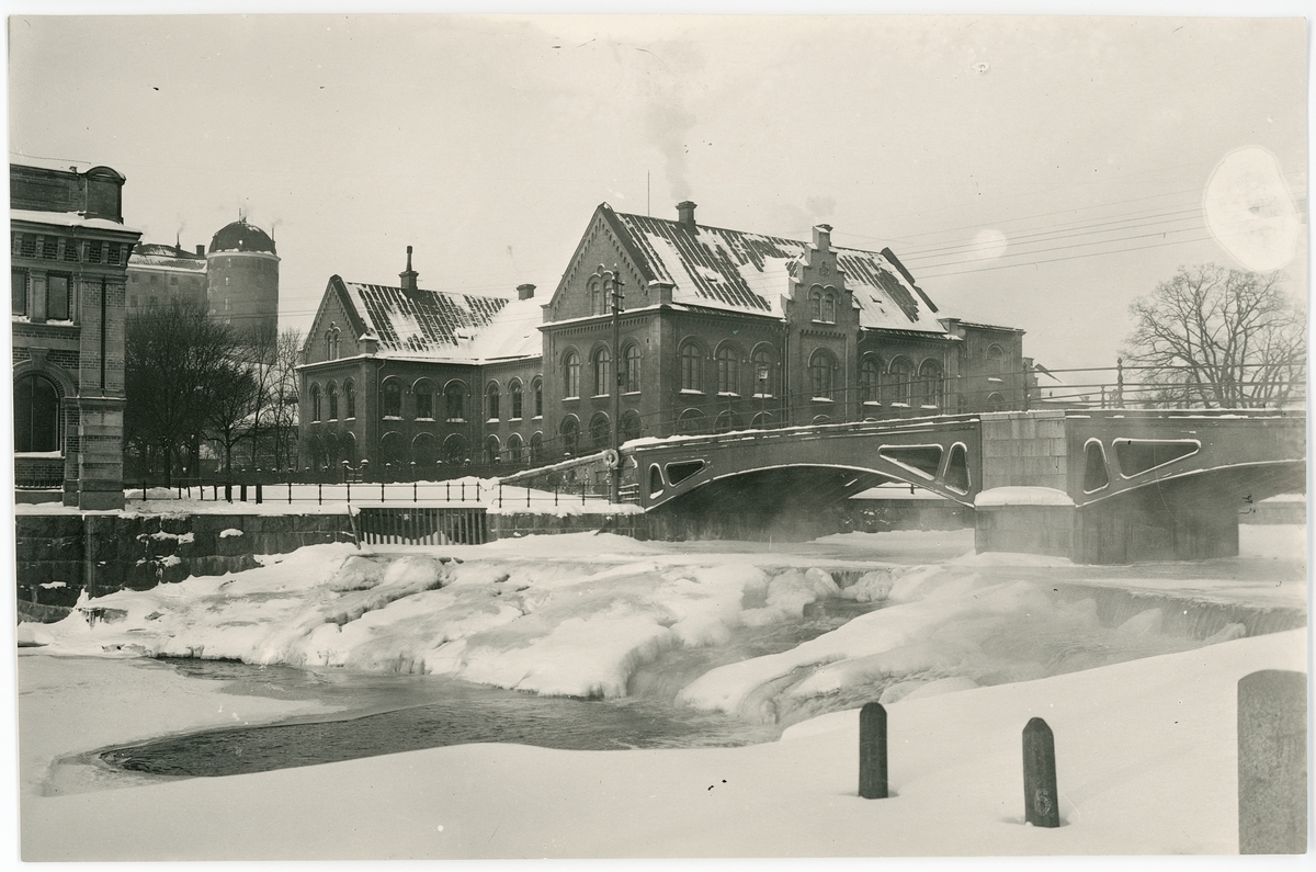 Vy från Hamnplan över Fyrisån och Islandsbron, Uppsala