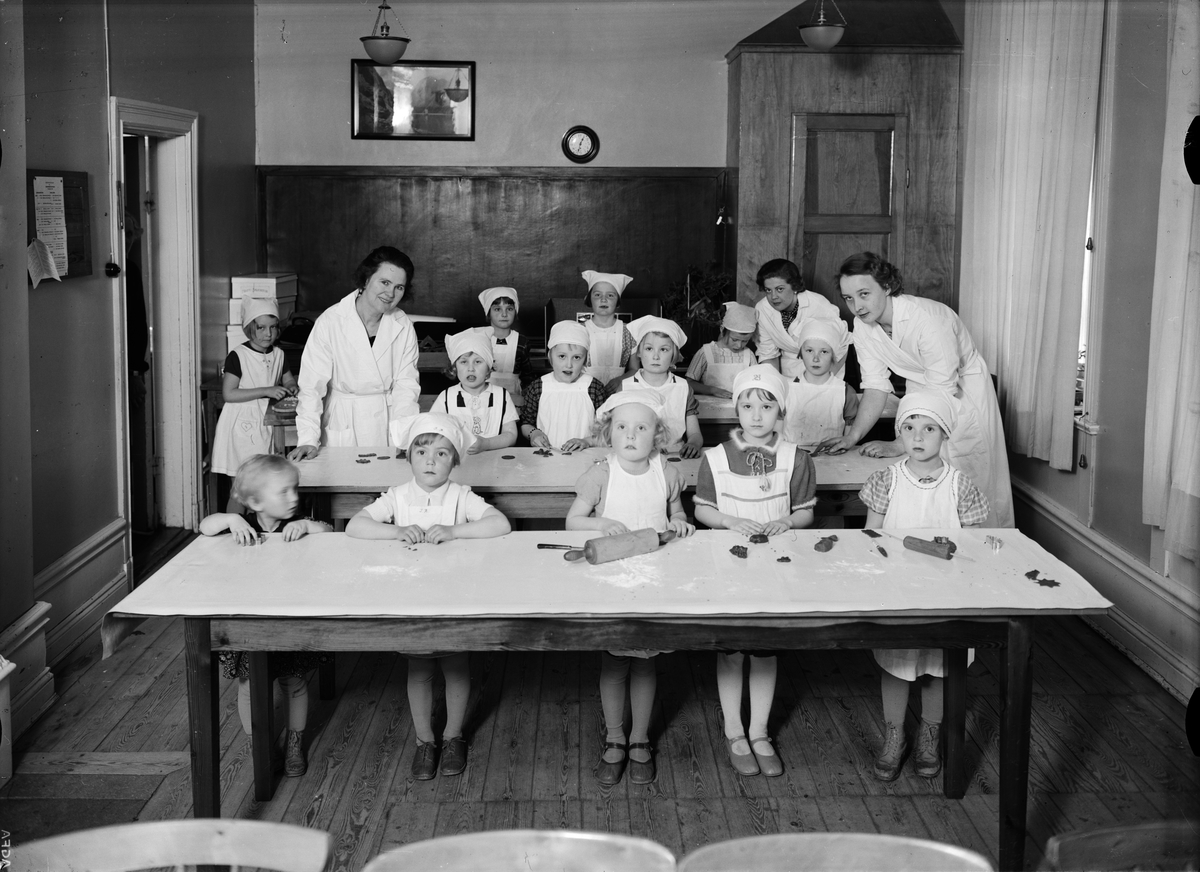 Barn som bakar, sannolikt på ett daghem, Uppsala 1936