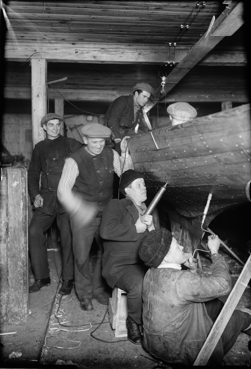 Medlemmar i Ekolns Segelklubb vid deras första lottbåt, sjösatt i Fyrisån, Uppsala 15 juni 1923