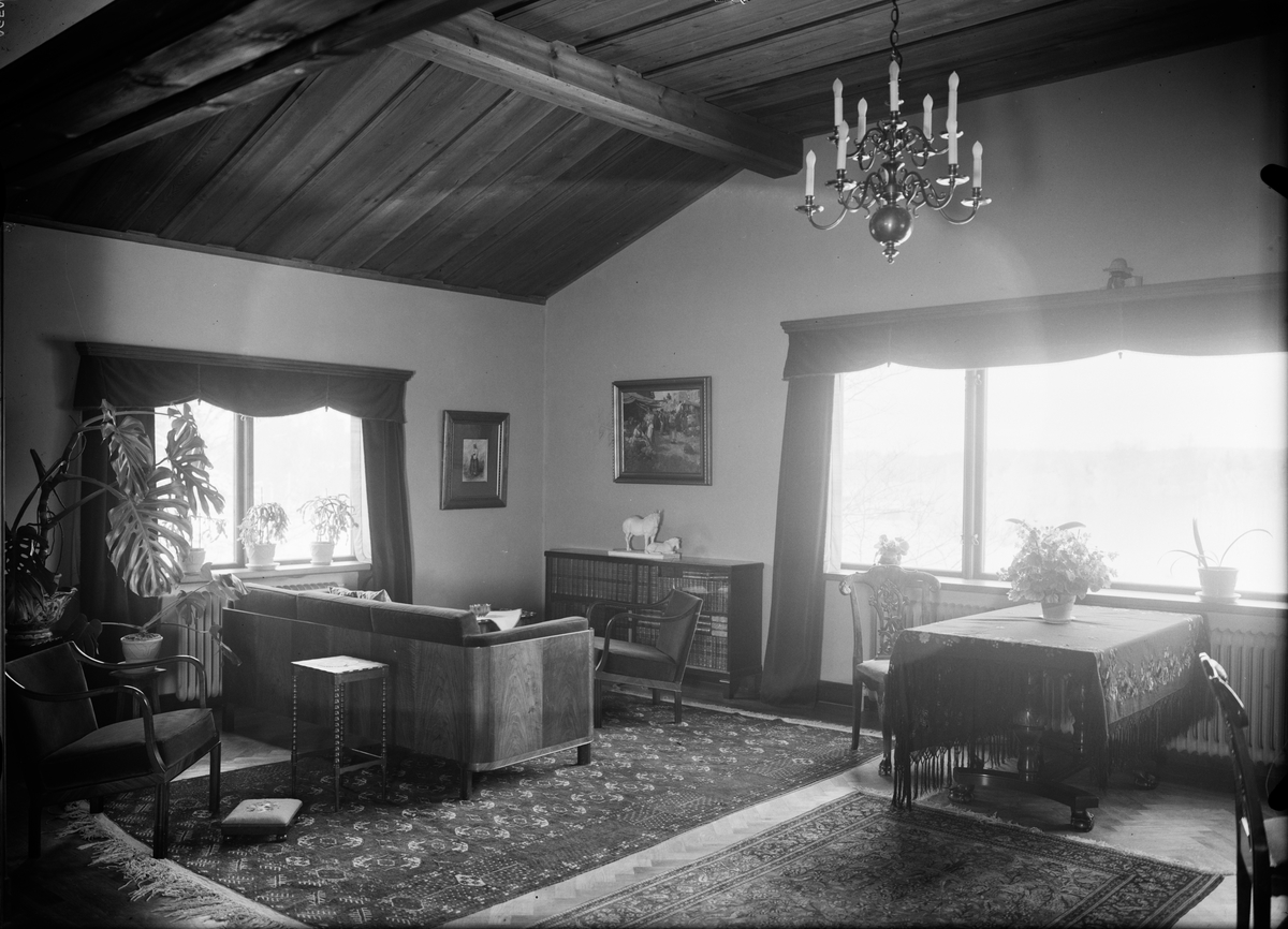 Titel: Bostadsinteriör - byggmästaren Anders Diös villa, Vårdsätravägen, kvarteret Aspen, Graneberg, Sunnersta, Uppsala 1935