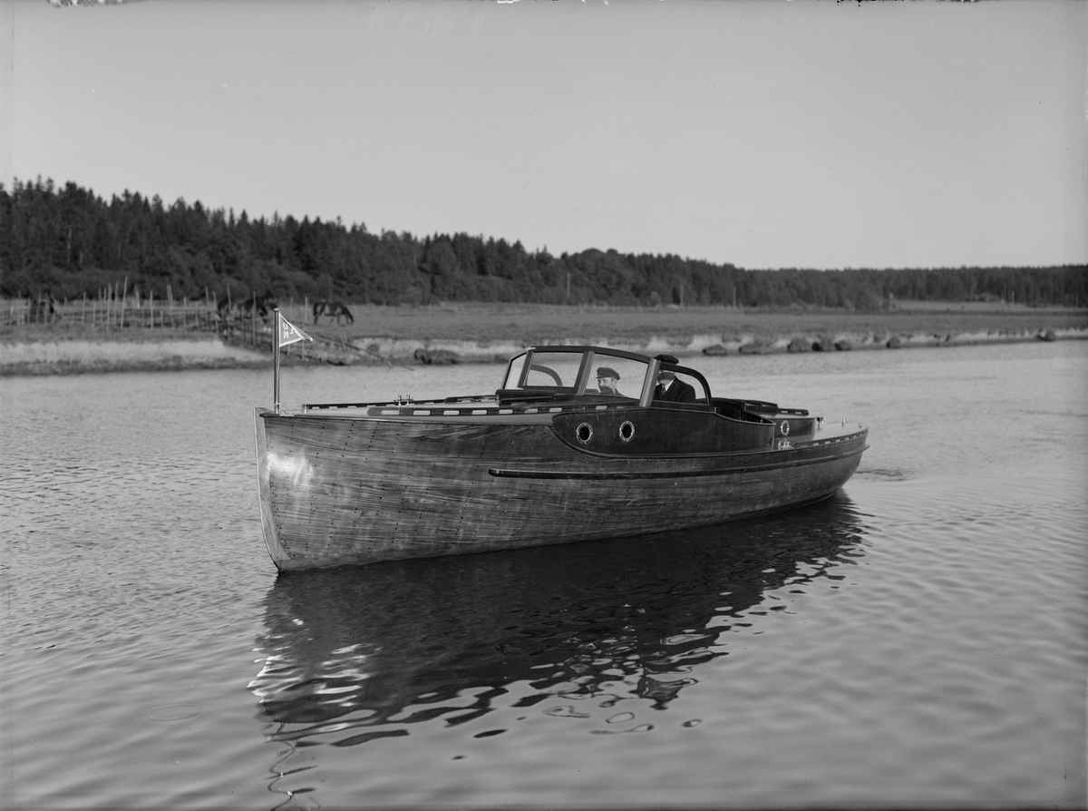 Motorbåt, sannolikt på Fyrisån, Uppsala, 1934