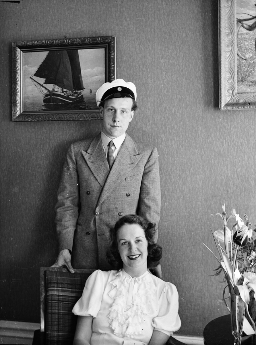 Ung kvinna och ung man, sannolikt studentfest i hemmet i Sverige