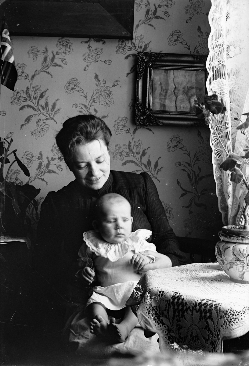 Christiane Liljefors med sannolikt med sonen Alf i famnen i hemmet i Göteborg, Sverige