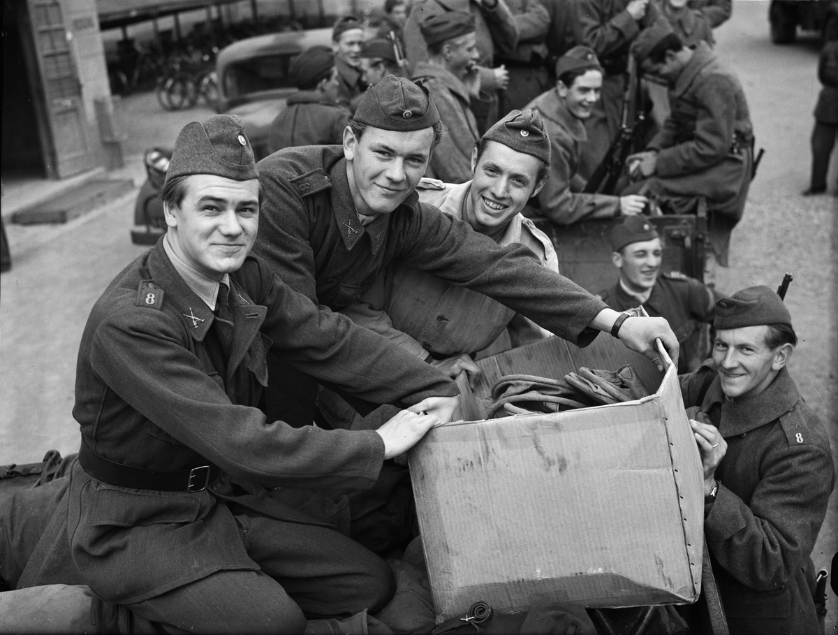 "600 värnpliktiga från I 8 deltar i skördearbetet", Uppsala 1946