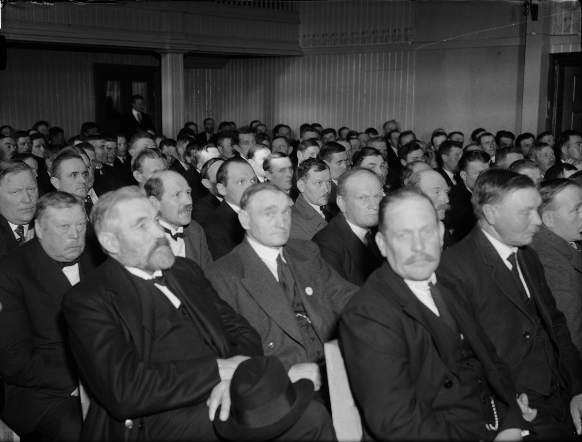 "Arrendatorer Upland runt besluta organisera sig vid Alundamöte" - mötesdeltagare i Alunda Ordenshus, Uppland 1933