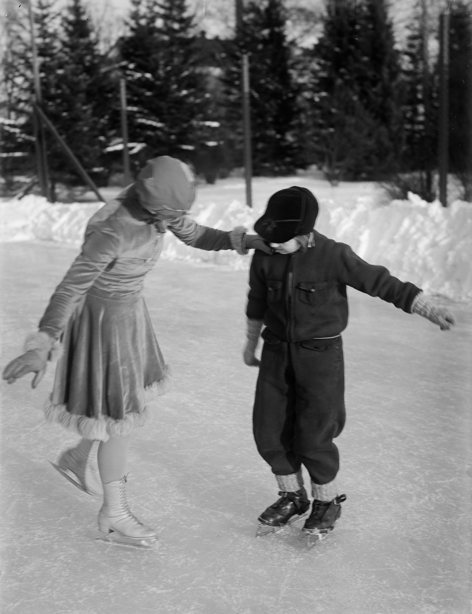 Skridskoåkande barn på Studenternas Idrottsplats, Uppsala 1933
