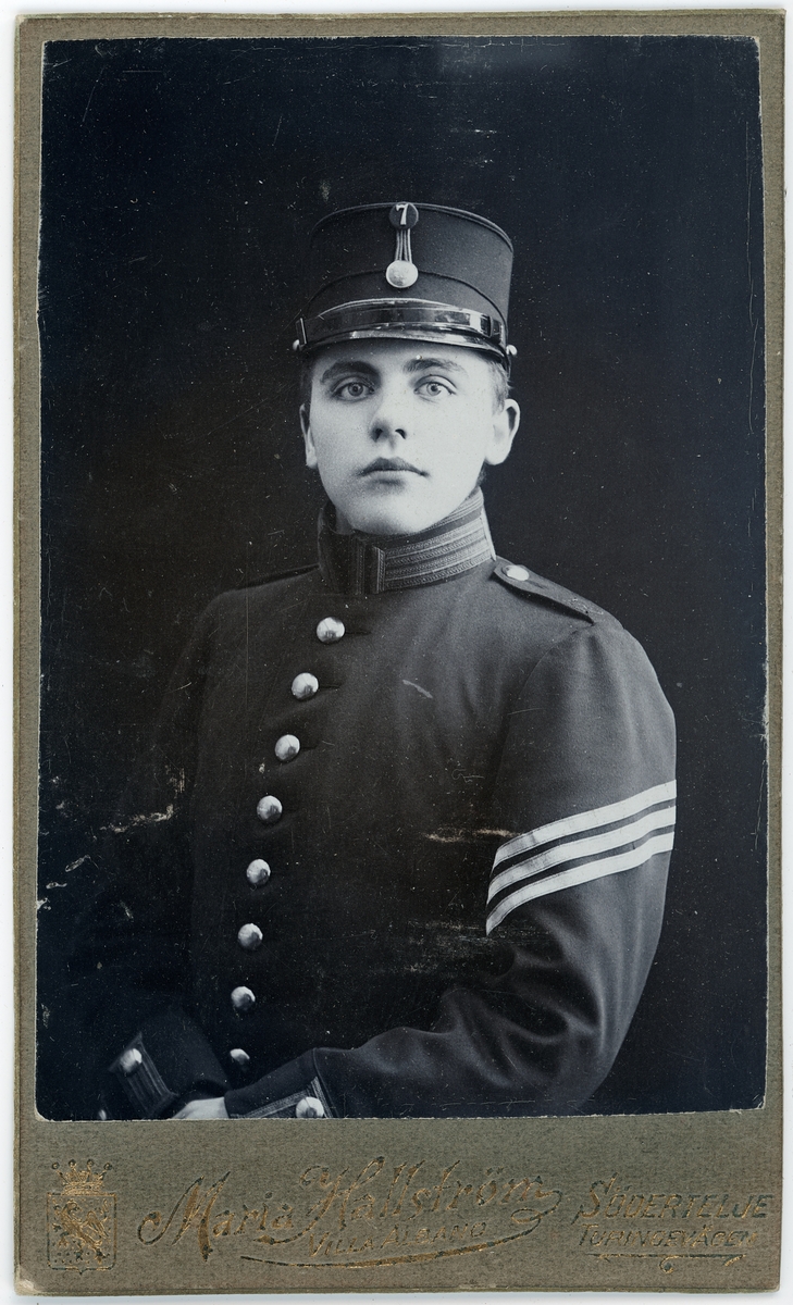 Kabinettsfotografi - ung man i uniform, Södertälje