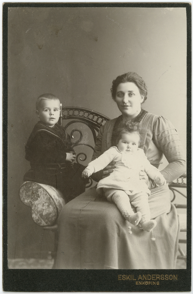Kabinettsfotografi - Edit Lundevall med barnen Sven och Sara, Enköping 1916