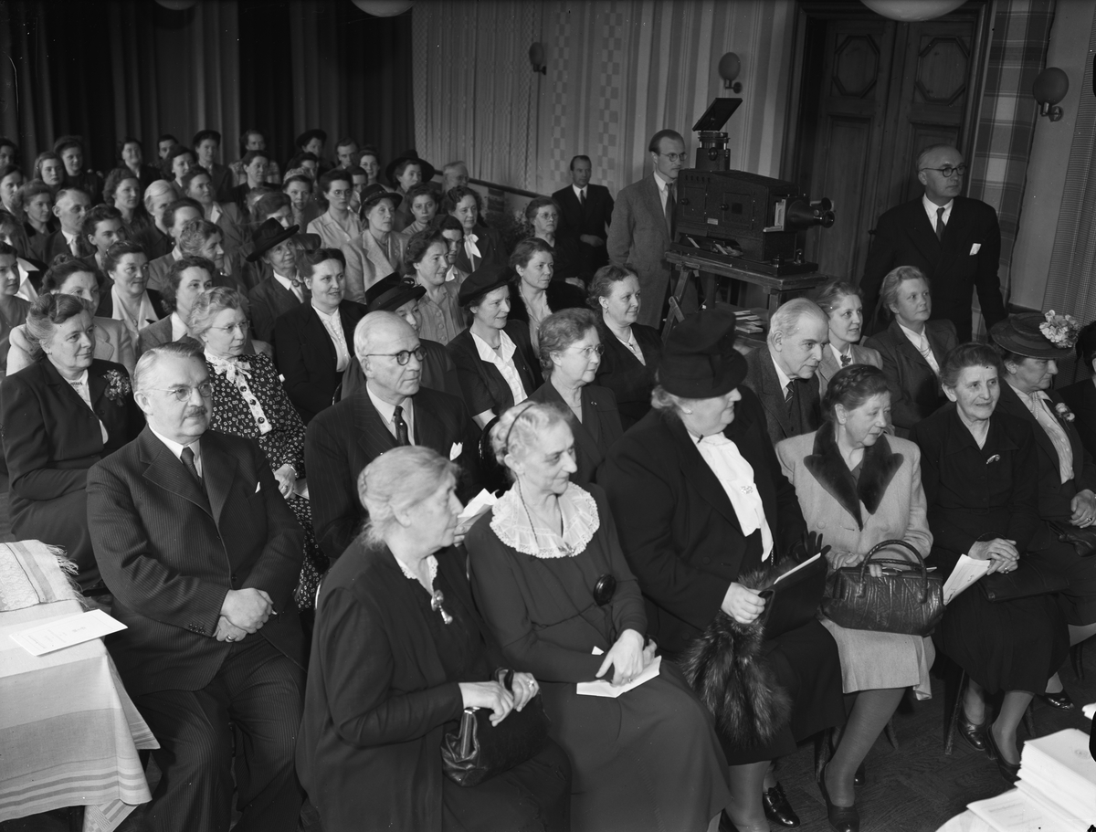 Intendent Nils Ålenius vid Upplandsmuseet föreläser, Uppsala 1940-tal
