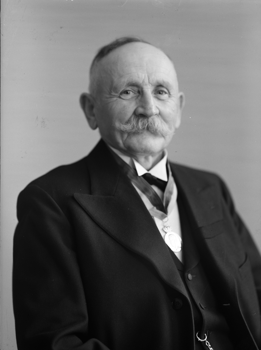 Ateljéporträtt - äldre man med medalj, Uppsala 1946