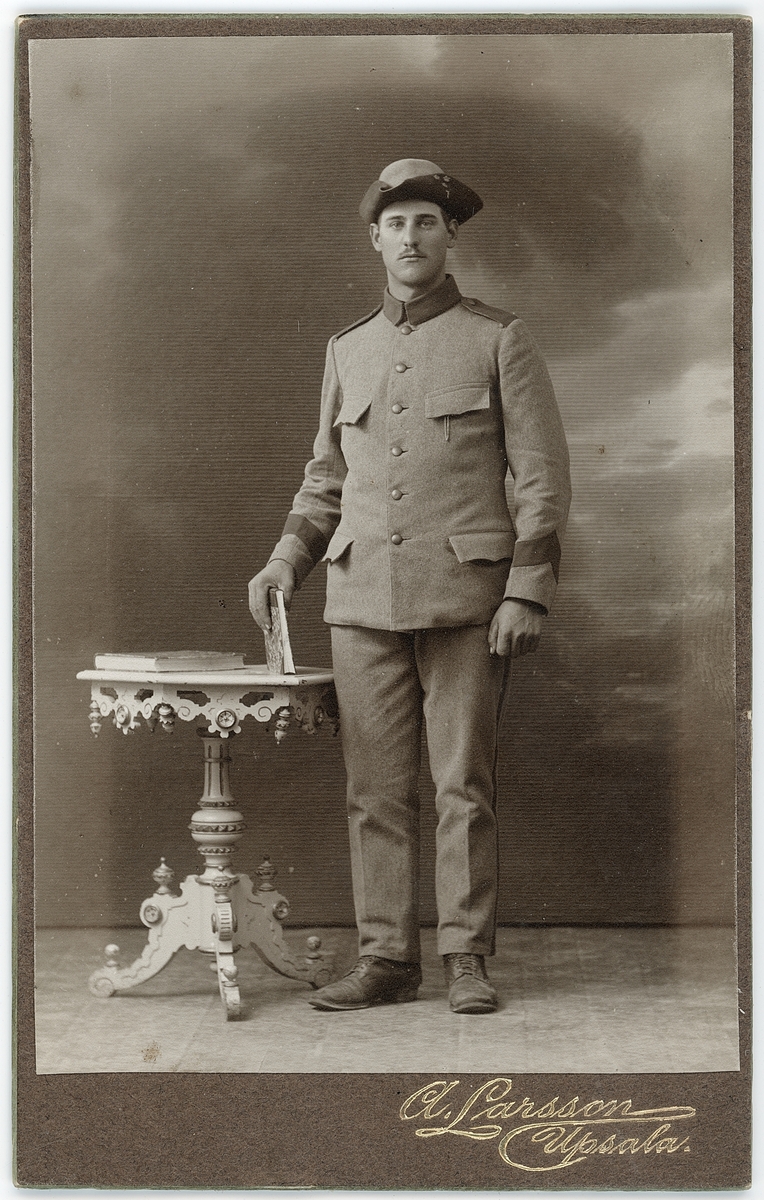 Kabinettsfotografi - ung man i uniform, Uppsala 1915