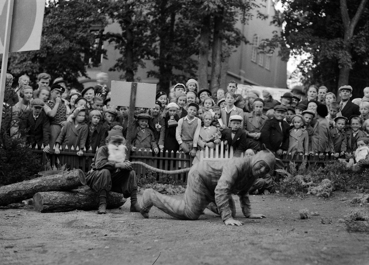 Titel: "Barnens dag inleddes i strålande sol. Stora människomassor i rörelse", Uppsala 1937