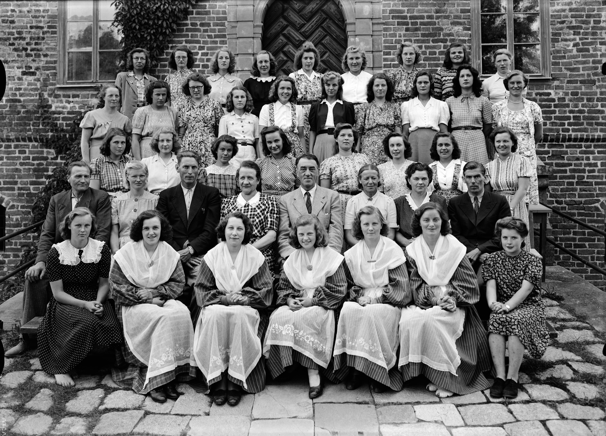 Grupporträtt - elever och lärare vid Wiks folkhögskola, Vik, Balingsta socken, Uppland 1944
