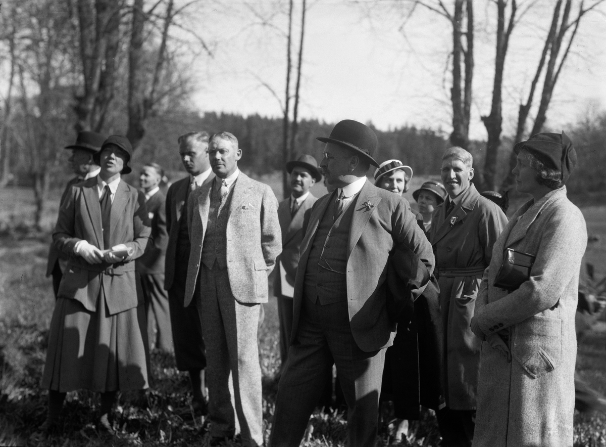 "Väldig anslutning, rikt program vid Fornminnesföreningens utflykt", Frötuna socken, Uppland 1933