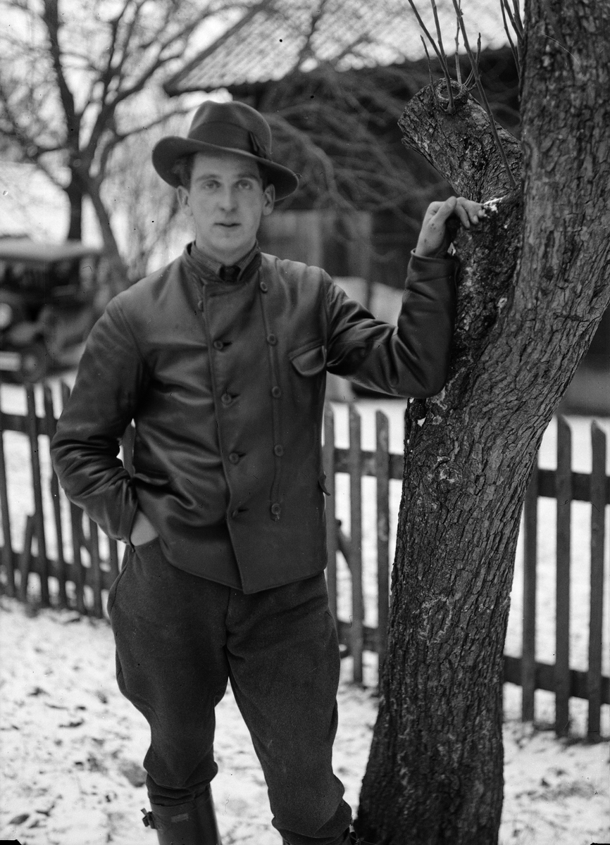 "J.U.F.-tävlan i hovbeslag" i Lytta, Bälinge socken, Uppland januari 1935. Vinnaren Uno Andersson från Viksta JUF